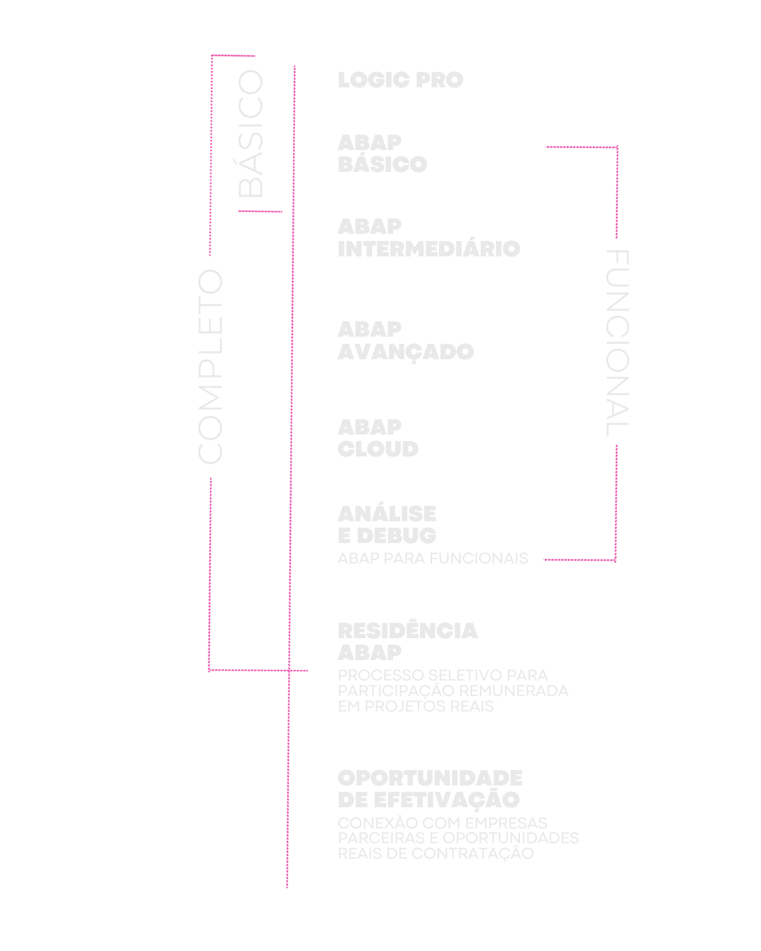 Na jornada ABAP COMPLETO você passa por todos os módulos e tem a oportunidade de participar da Residência ABAP e outros programas de aceleração.